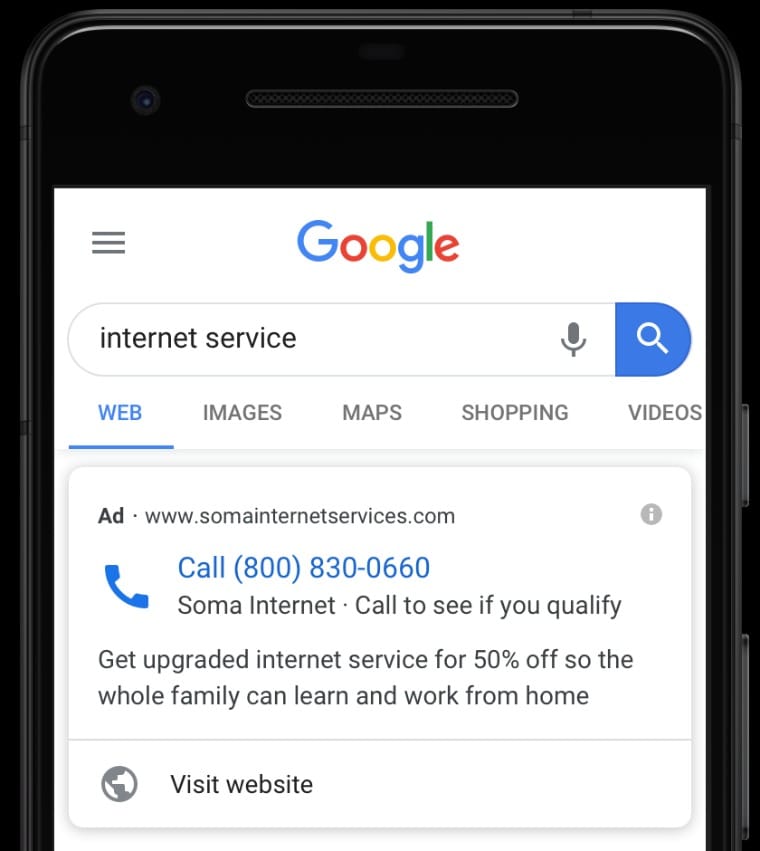 Call Ads (also known as "Click-to-Call Ads") appear on Google Search and are optimized for mobile users. Instead of directing users to a website, they prompt them to call your business directly — increasing chances of real engagement and faster conversions.